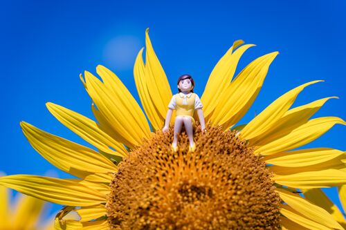 こんにちは♪ 先程から土砂降りになってきましたね。 写真は、天気の良かった昨日の射水市七美野寺のヒマワリ畑、今回はフチ子とからめた写真です。 座高が3cmほどのフチ子からもわかるように、そんなに大きなヒマワリではありませんね。 ちなみに、フチ子は…