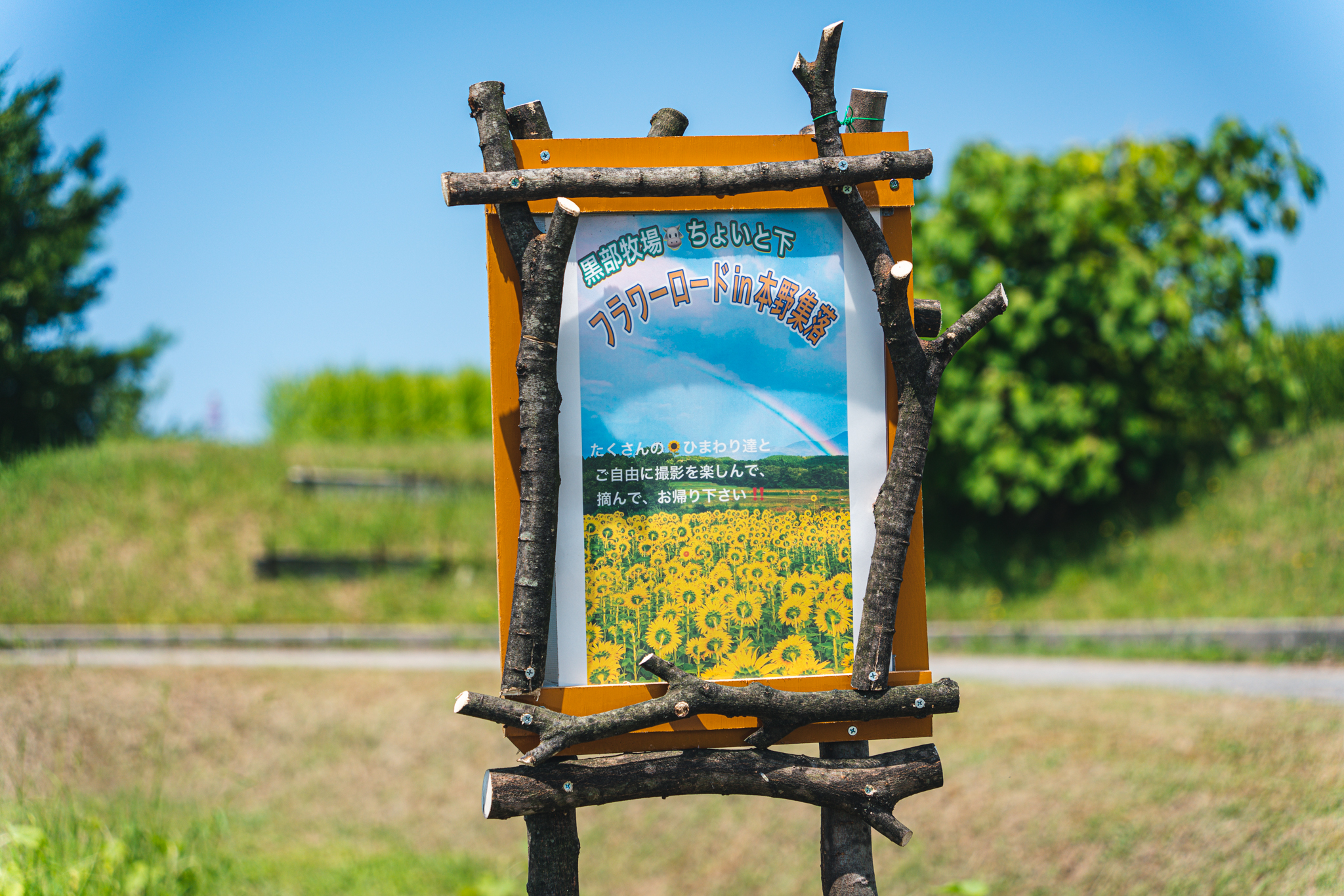 「フラワーロードin本野集落」の看板がありました。写真や摘み取りOKとのことです。