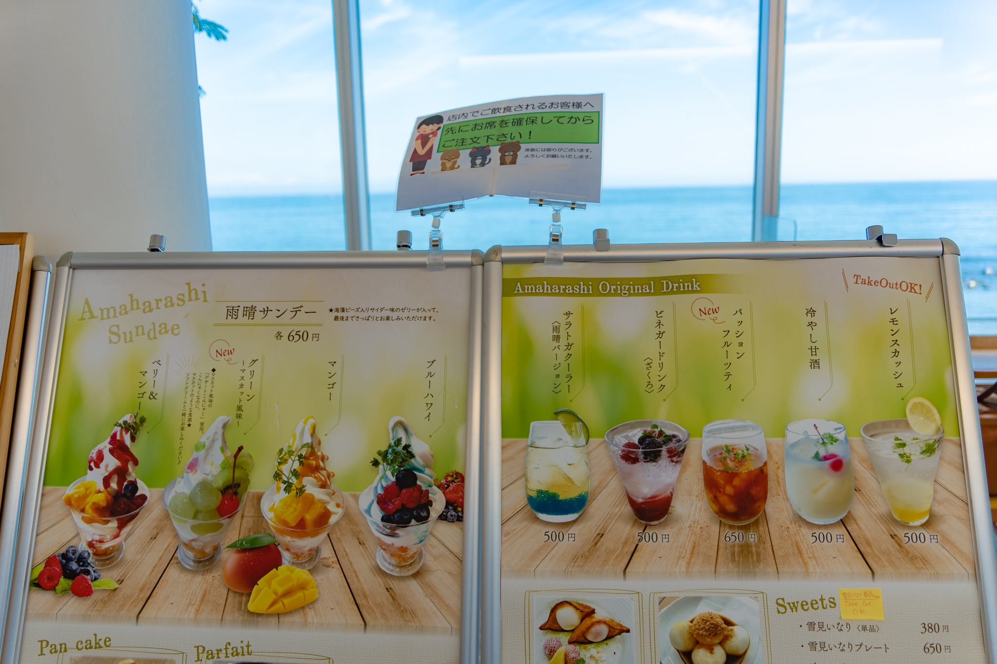 2Fにあるカフェ・Cafe ISOMI TERRACEで。メニューです。