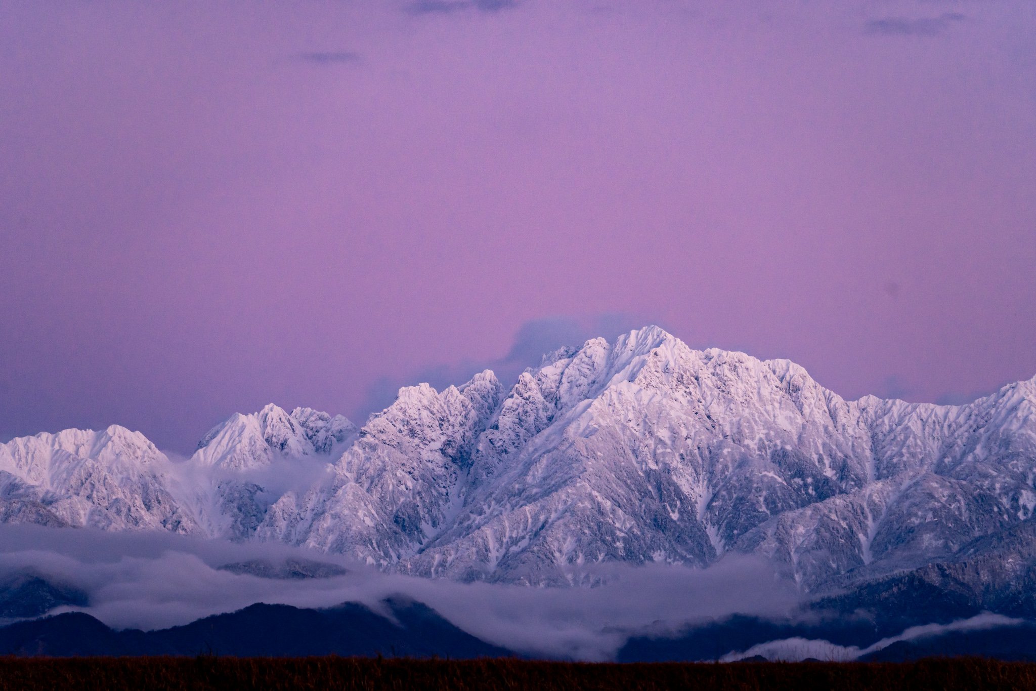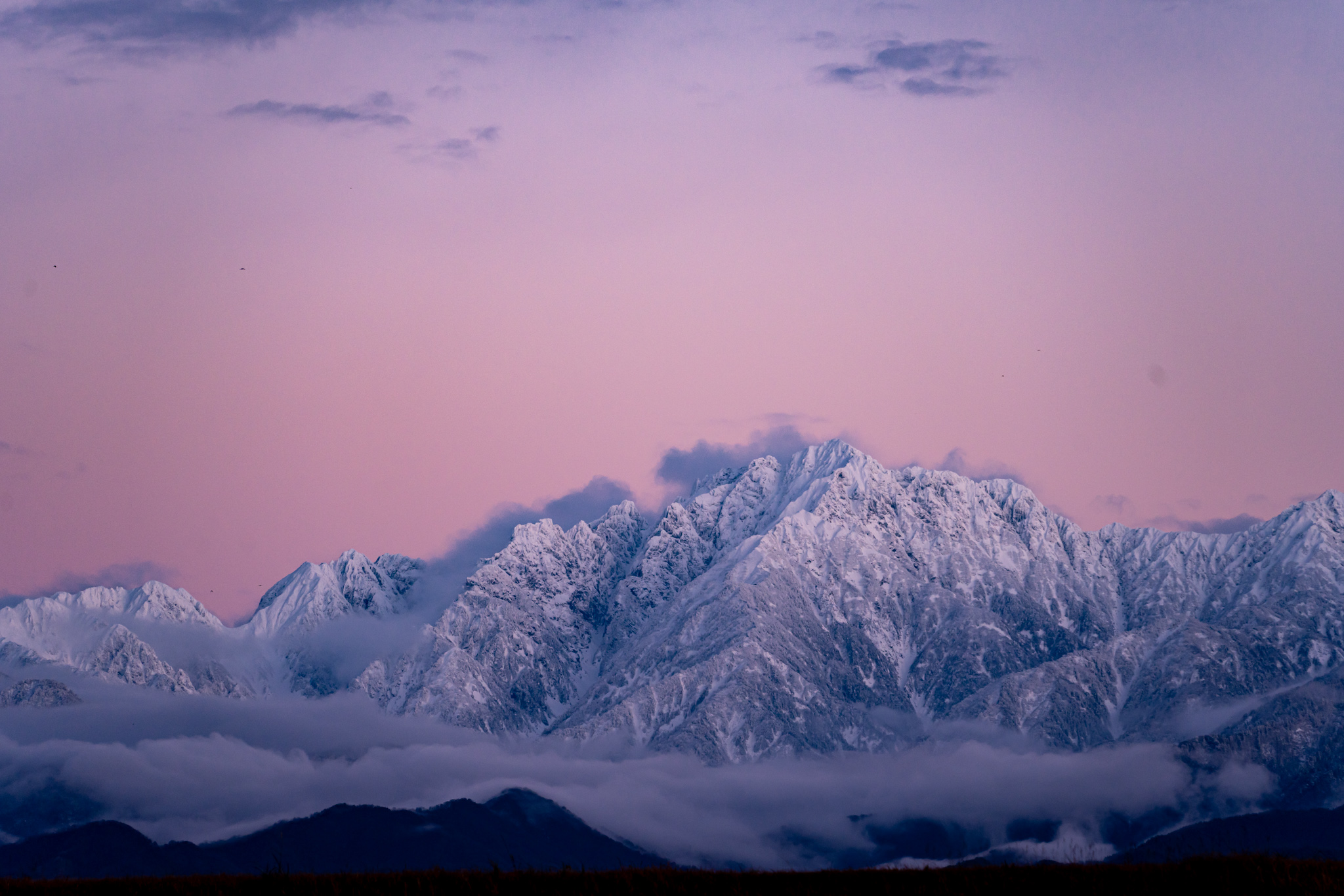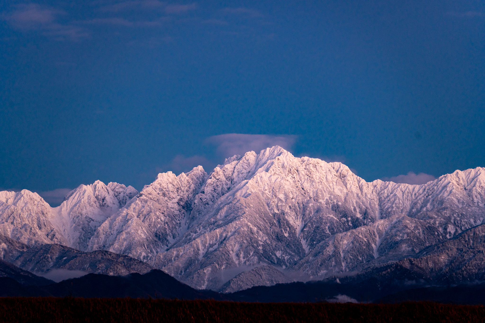 白い山々が浮かび上がり、美しい姿に。