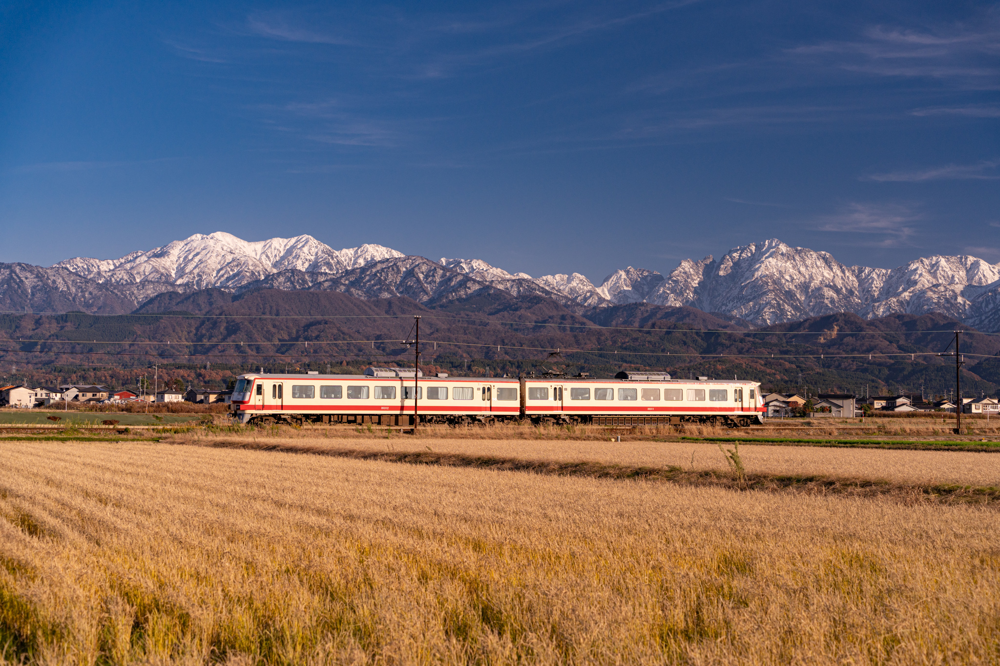 3時頃なので夕日があたり、ボディがキラリ。宇奈月温泉行きです。