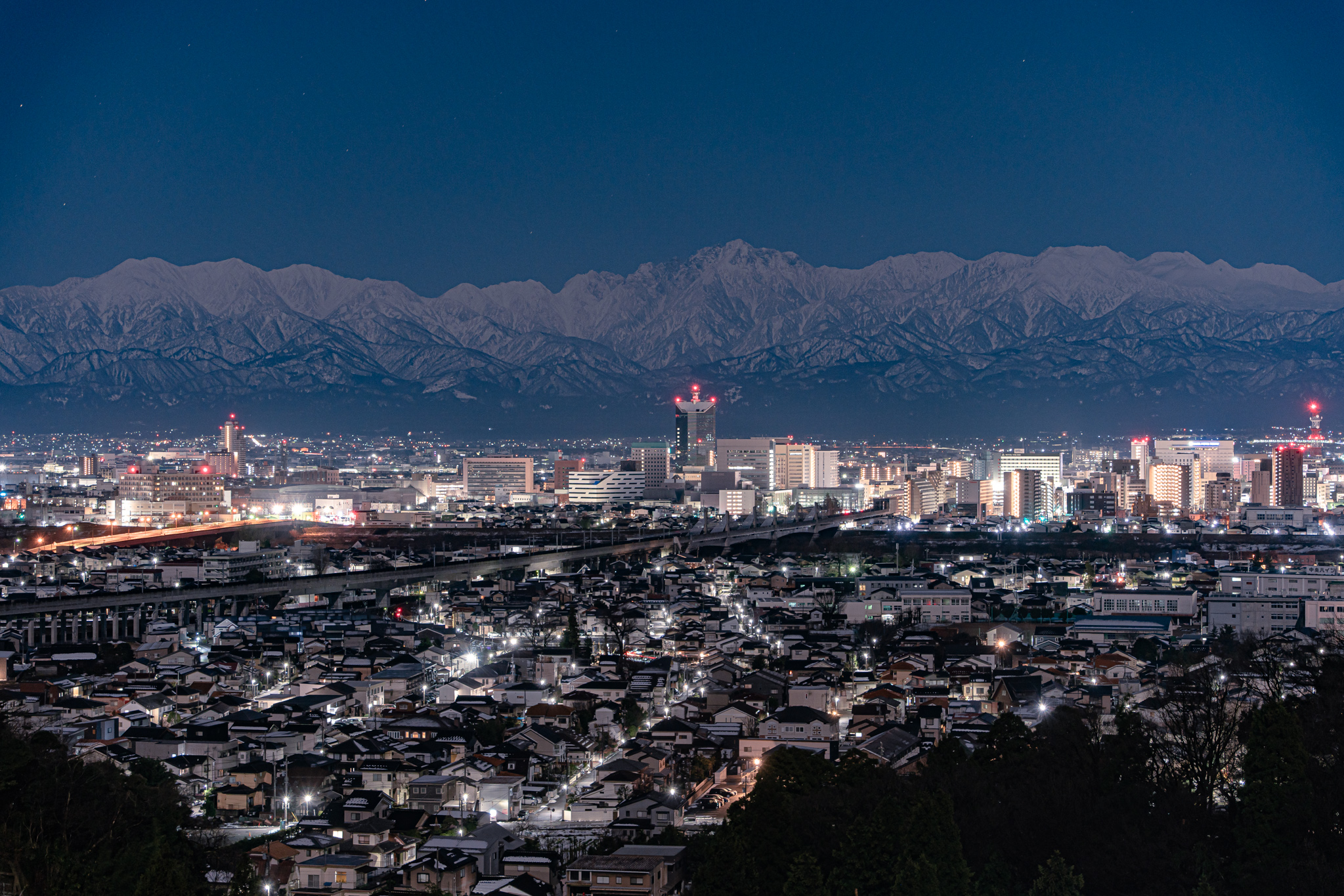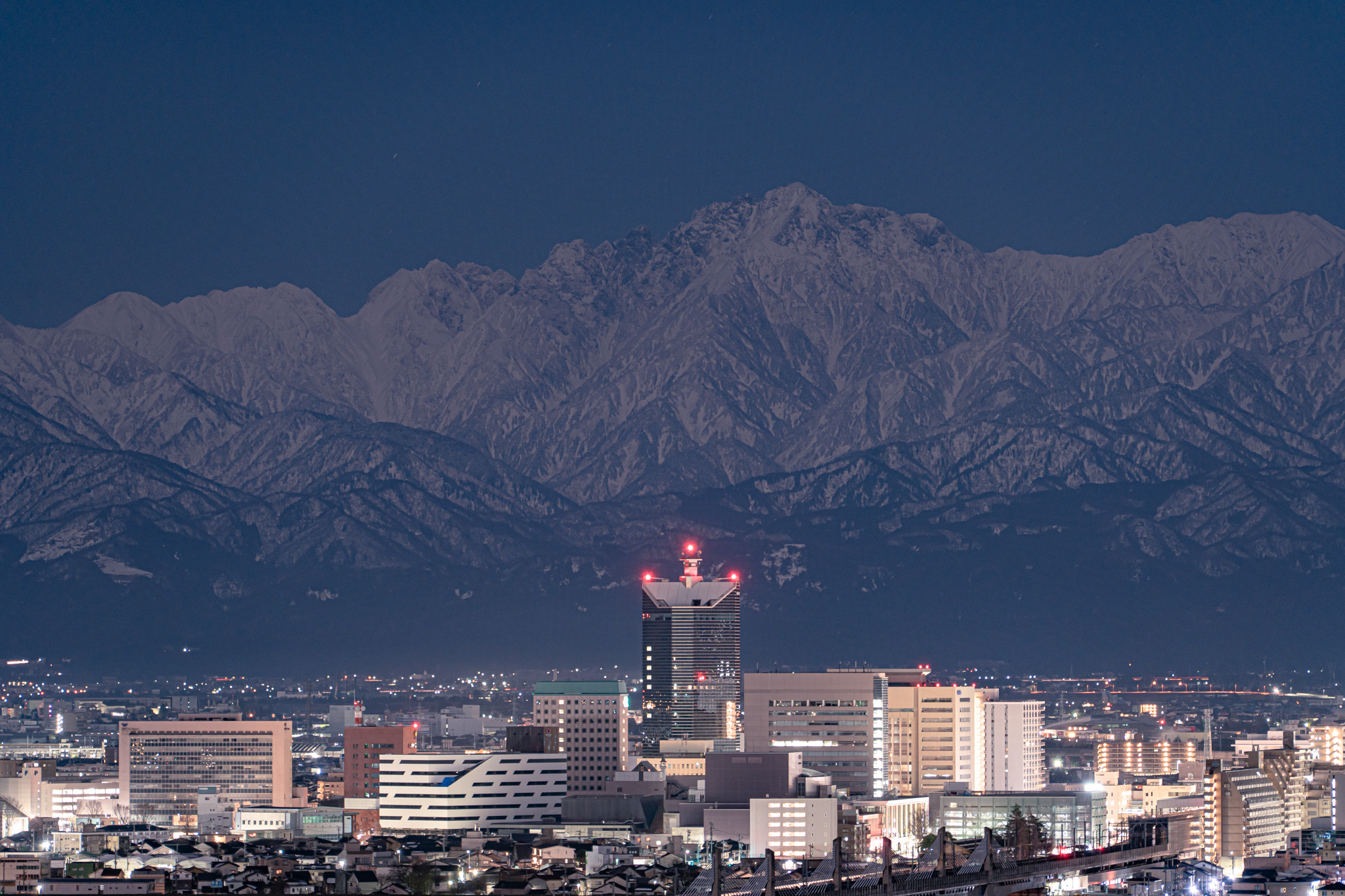 中央はインテックビル。暗いときはここにピントを合わせます(笑)。