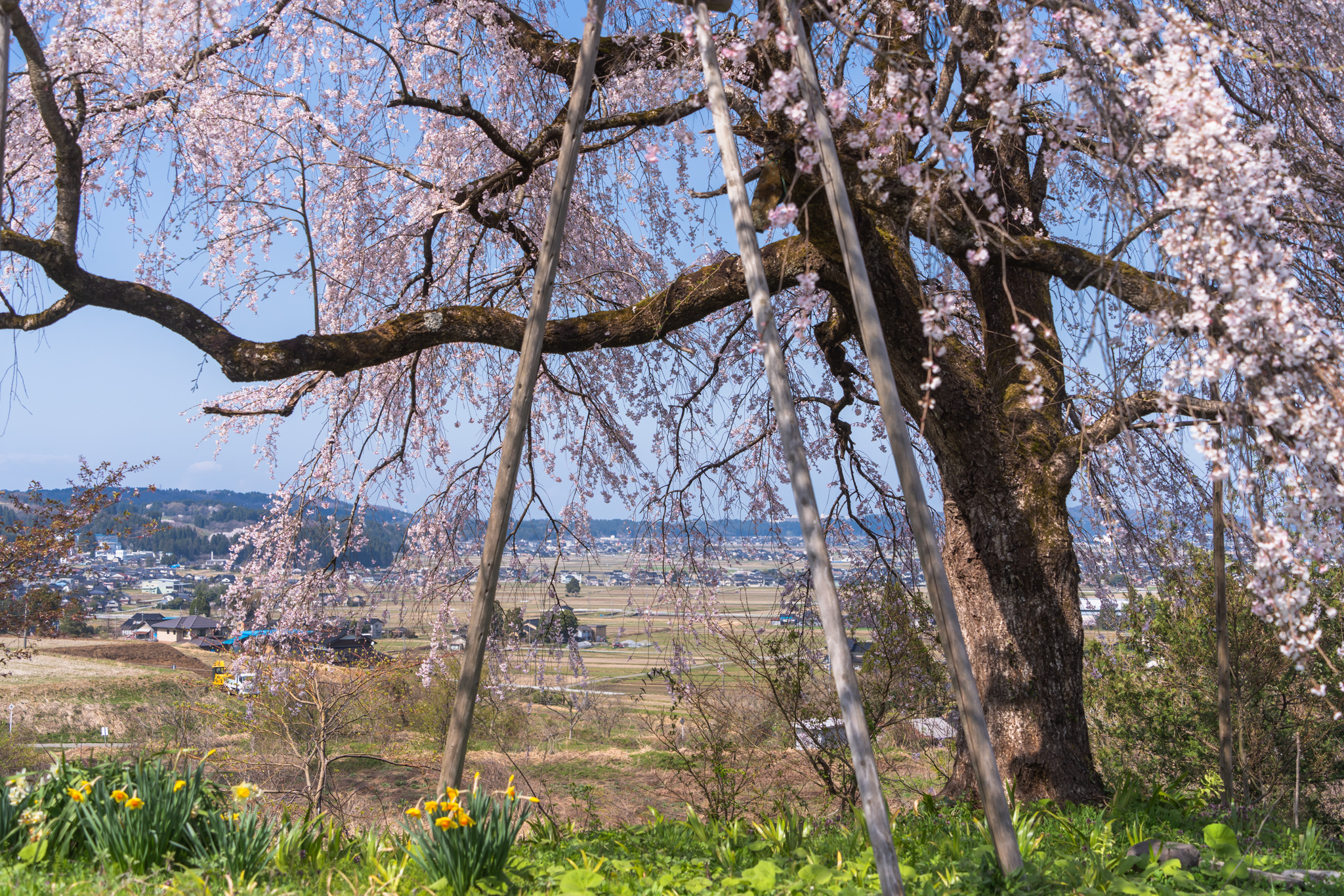 八尾町松原の紅しだれ桜、4/9の撮影です。ちょうど見頃で、今年の大雪にも負けず美しい姿をみせています。