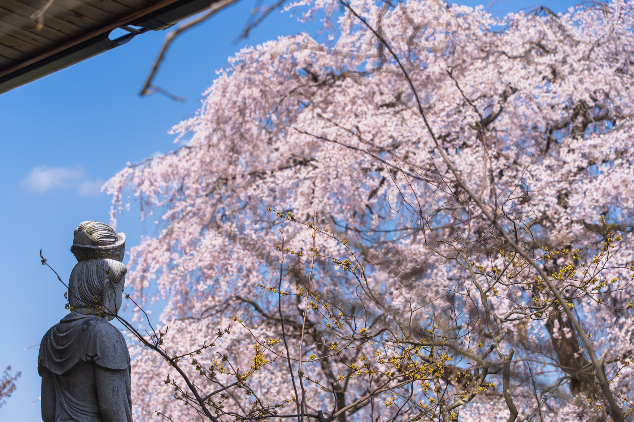 昨年設置された観音様も、桜や眼下に広がる八尾の町並みを見つめておられました。